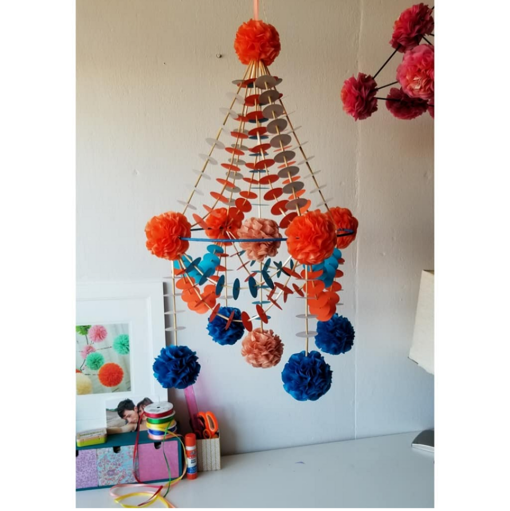 Paper Chandelier in blue/orange or yellow/pink/seafoam